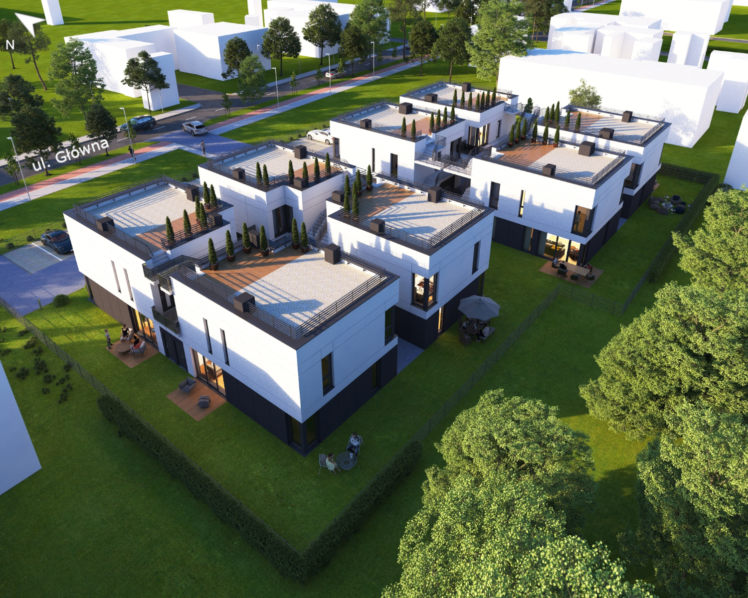 Zobacz w Google MapsBiałe Tarasy to kameralna inwestycja, obejmująca 16 nowoczesnych apartamentów w 8 budynkach jednorodzinnych dwulokalowych, subtelnie nawiązujących do modnego włoskiego stylu. Apartamenty dostępne są w kilku wariantach o różnej powierzchni – od ok. 58 m² do ok. 74 m².