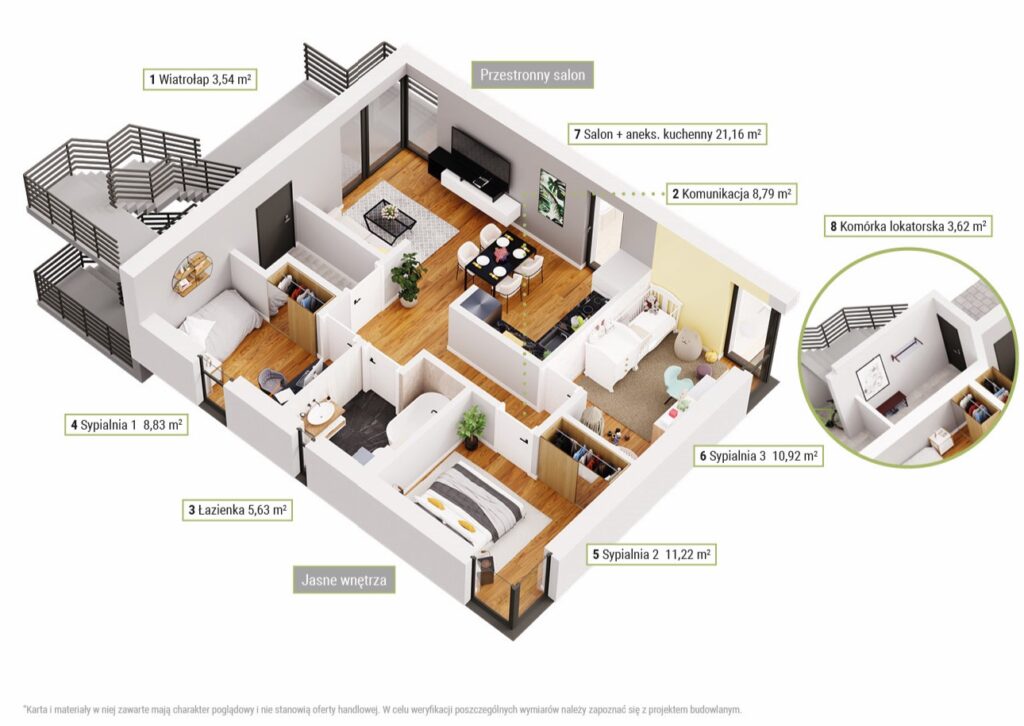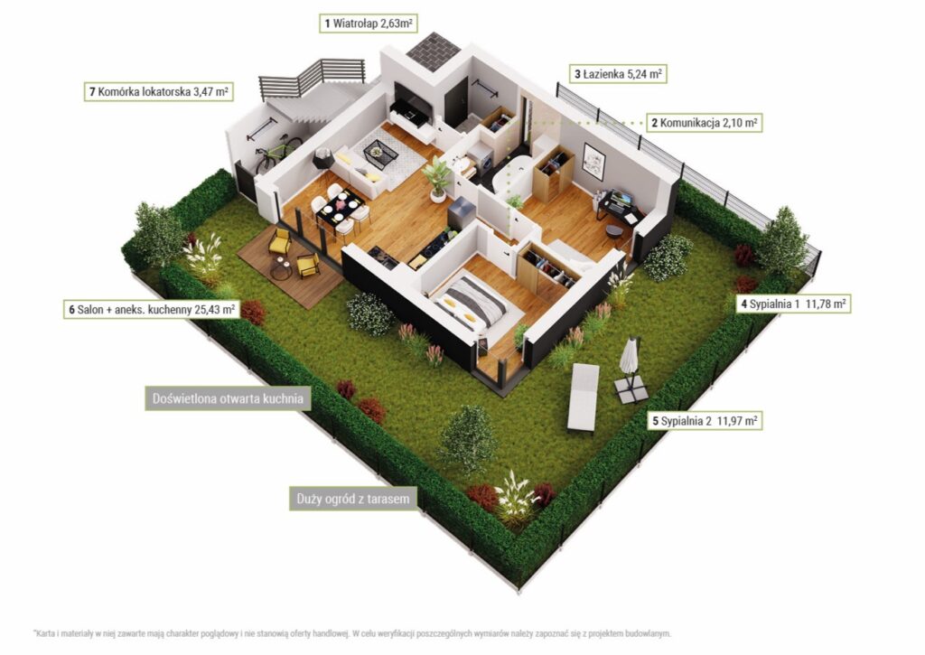 * Wizualizacje przedstawione na stronie mają charakter poglądowy i nie stanowią oferty handlowej. W celu weryfikacji poszczególnych elementów należy zapoznać się z projektem budowlanym.